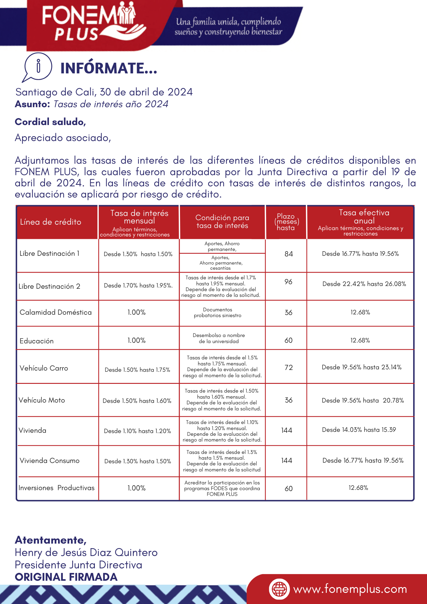 Apreciado asociado, le compartimos Tasas de interés año 2024