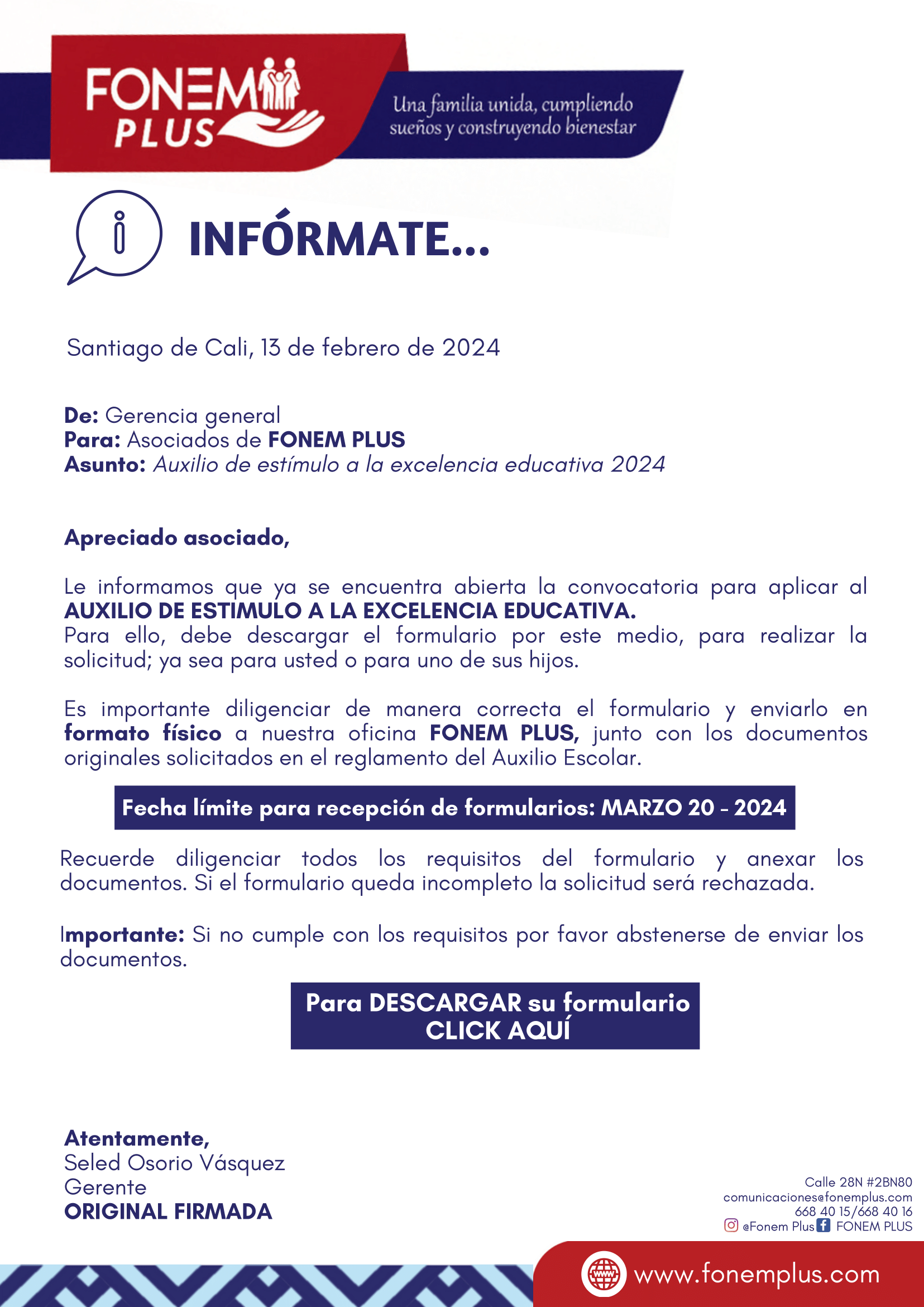 AUXILIO DE ESTÍMULO A LA EXCELENCIA EDUCATIVA Febrero 13, 2024 13Feb Para leer el reglamento de Estímulo a la Excelencia Educativa Clic AQUÍ