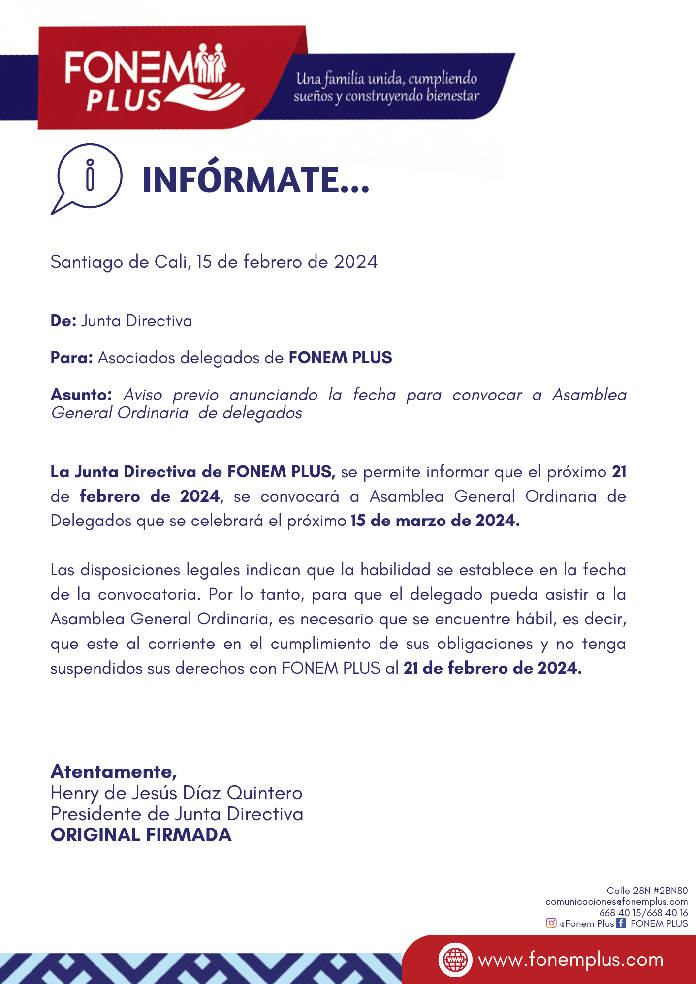 AVISO PREVIO ASAMBLEA 2024 Febrero 15, 2024 Febrero 15, 2024 15Feb AVISO PREVIO ANUNCIANDO LA FECHA PARA CONVOCAR A LA ASAMBLEA GENERAL ORDINARIA DE DELEGADOS