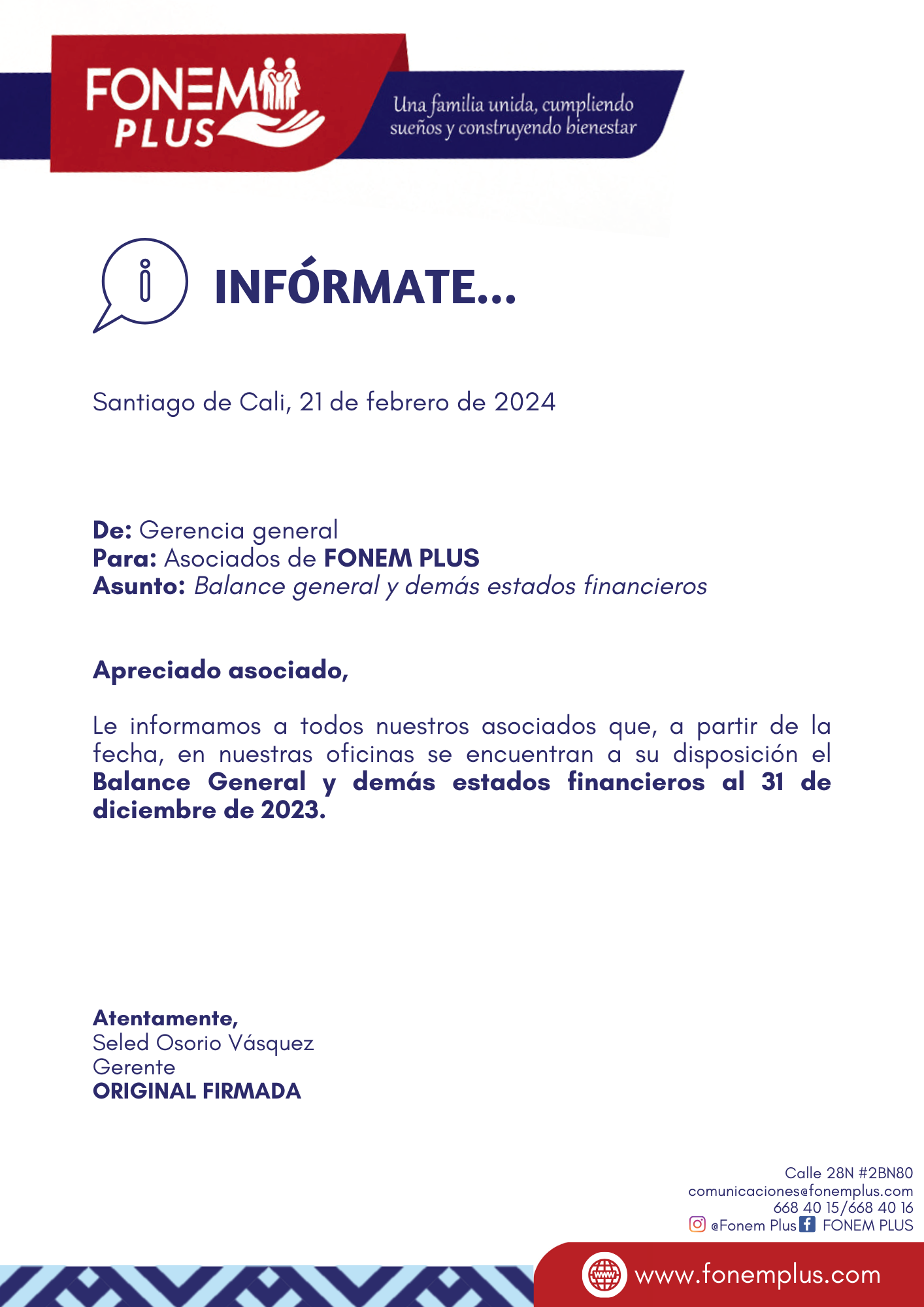 BALANCE GENERAL Y DEMÁS ESTADOS FINANCIEROS