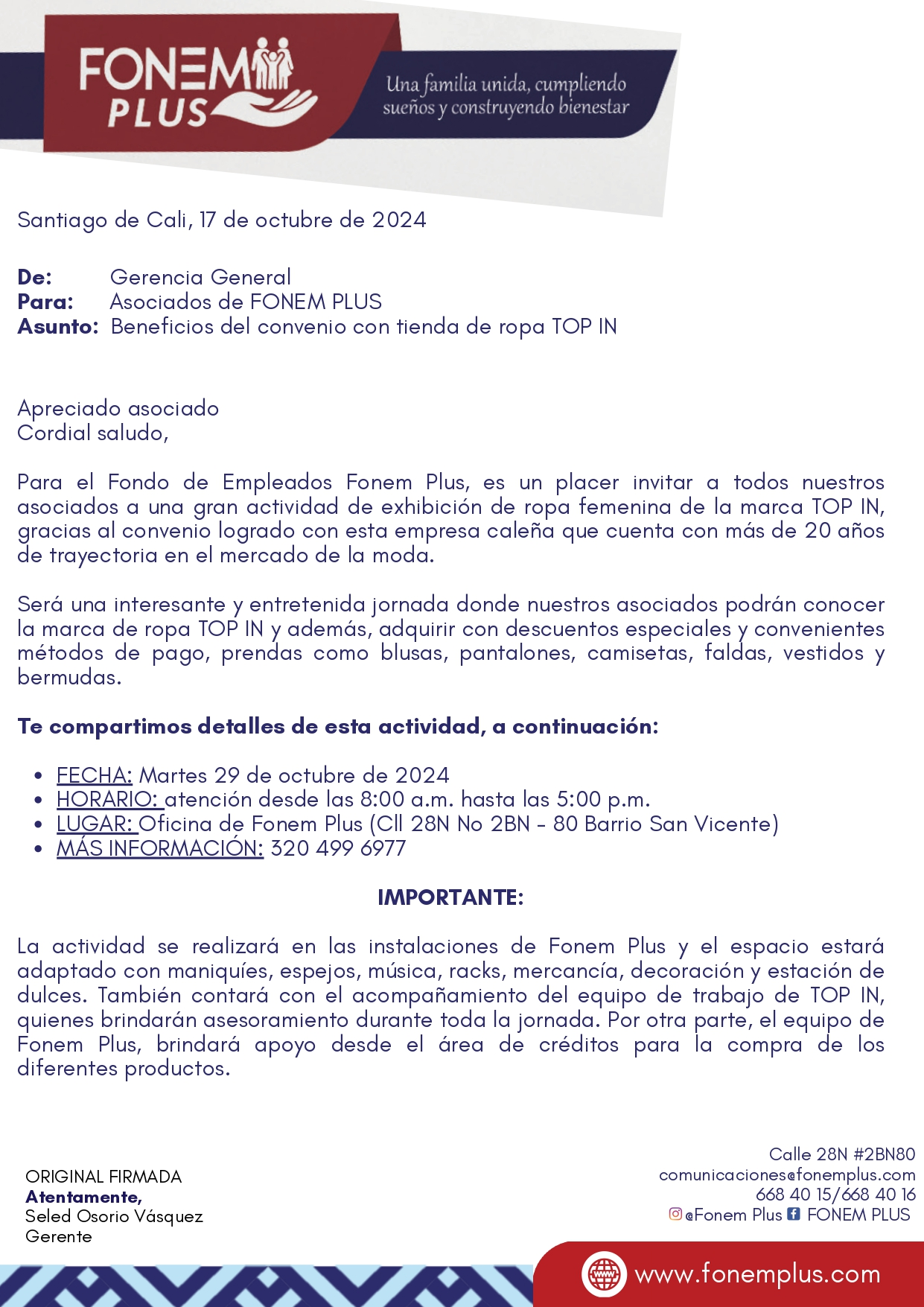 La marca de ropa TOP IN llegó a FONEM PLUS con hermosas prendas y grandes descuentos para asociados.