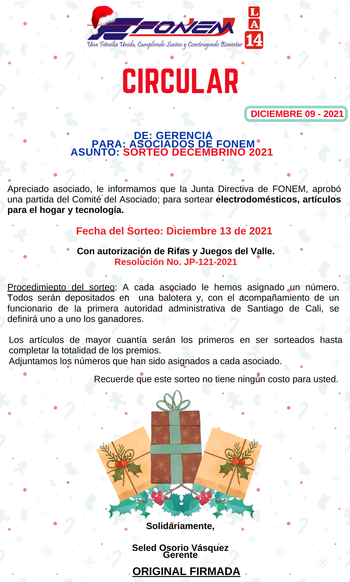 Apreciado asociado, le informamos que ya se encuentra disponible el número asignado a cada asociado para el Sorteo Decembrino 2021. Este sorteo se realizará el día LUNES 13 DE DICIEMBRE DE 2021.