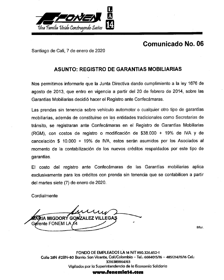 Apreciado asociado, le compartimos esta información del valor de COMFECAMARAS para las GARANTIAS MOBILIARIAS.