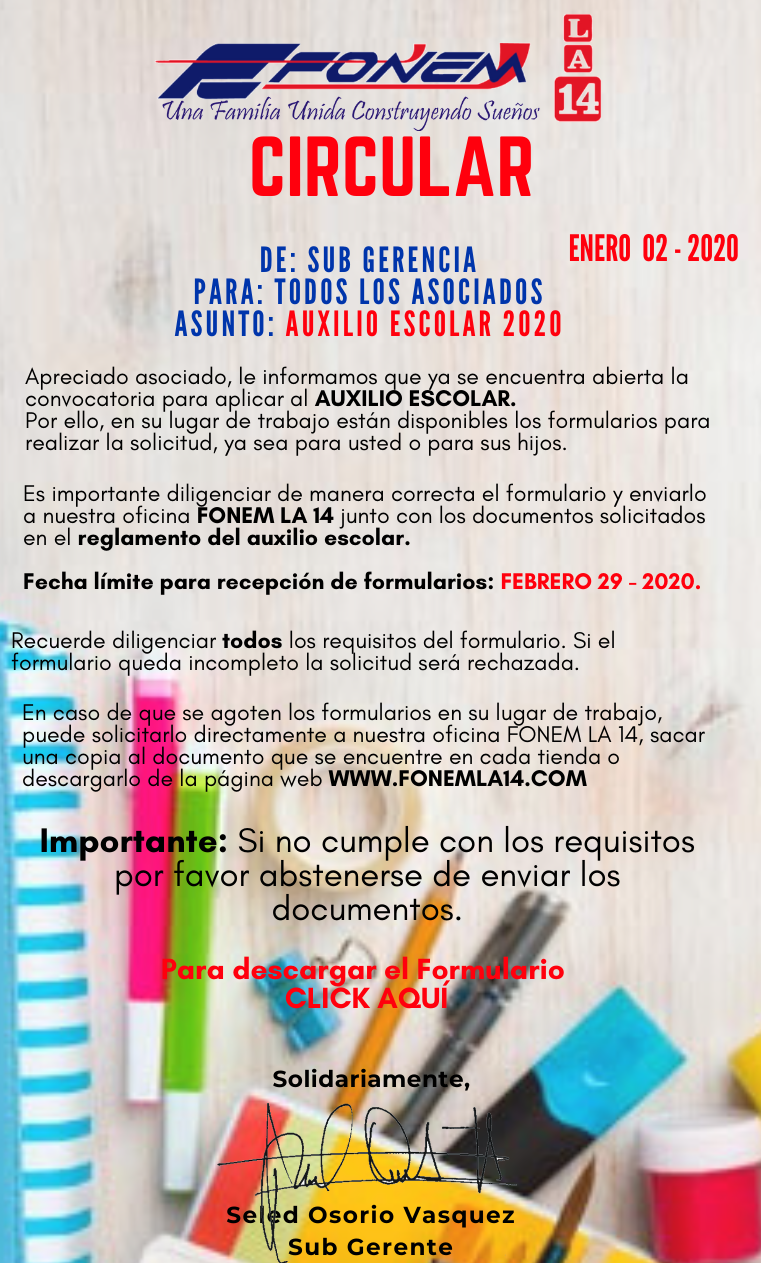 Consulta el Reglamento del AUXILIO ESCOLAR AQUÍ
