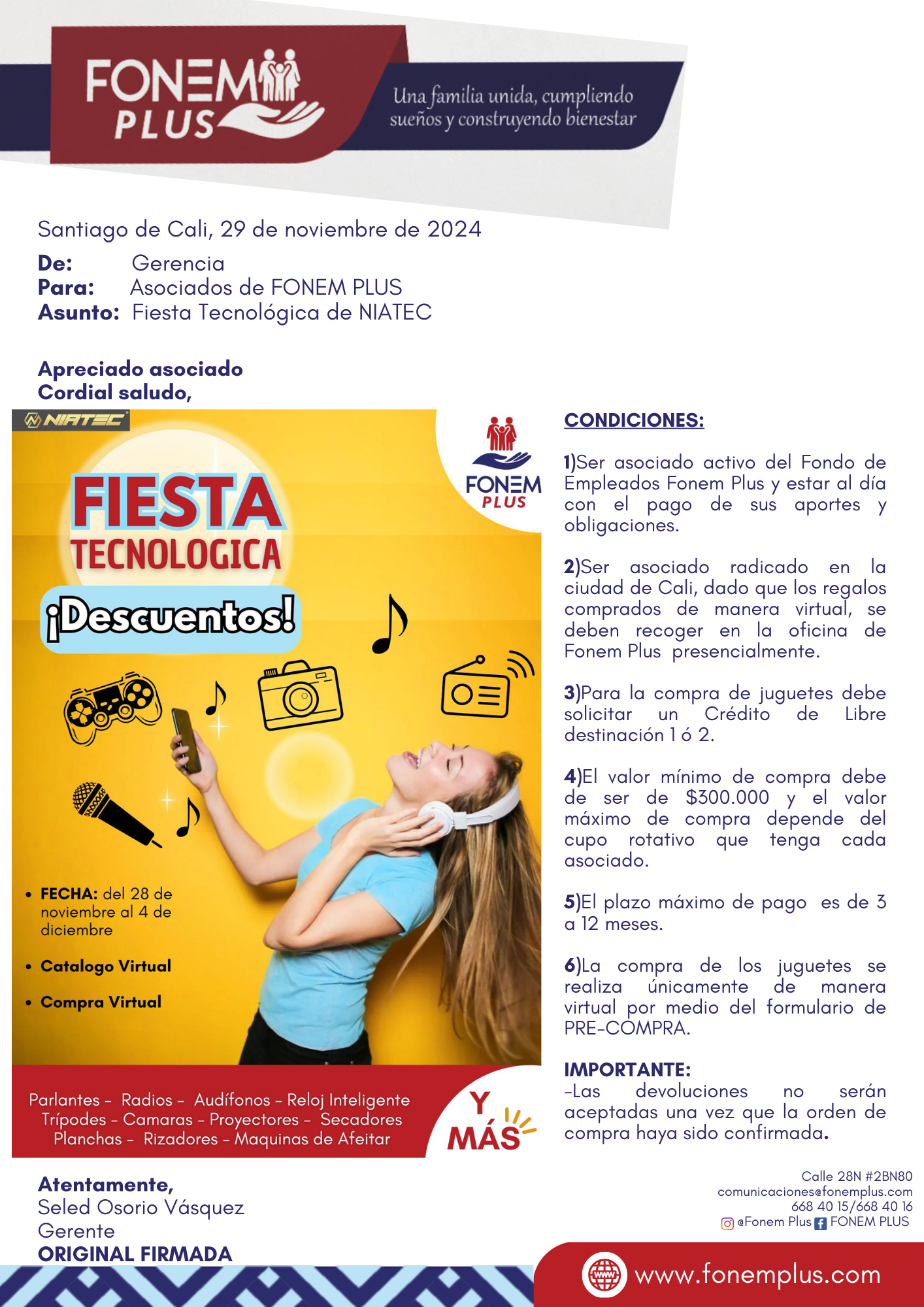 ¡GRAN FIESTA TECNOLÓGICA FONEM PLUS! DESCUENTOS IMPERDIBLES DISEÑADOS PARA TI ASOCIADO. Noviembre 29, 2024 29Nov Link para ver Catálogo de Productos de Niatec: Link para acceder al Formulario de precompra de Niatec