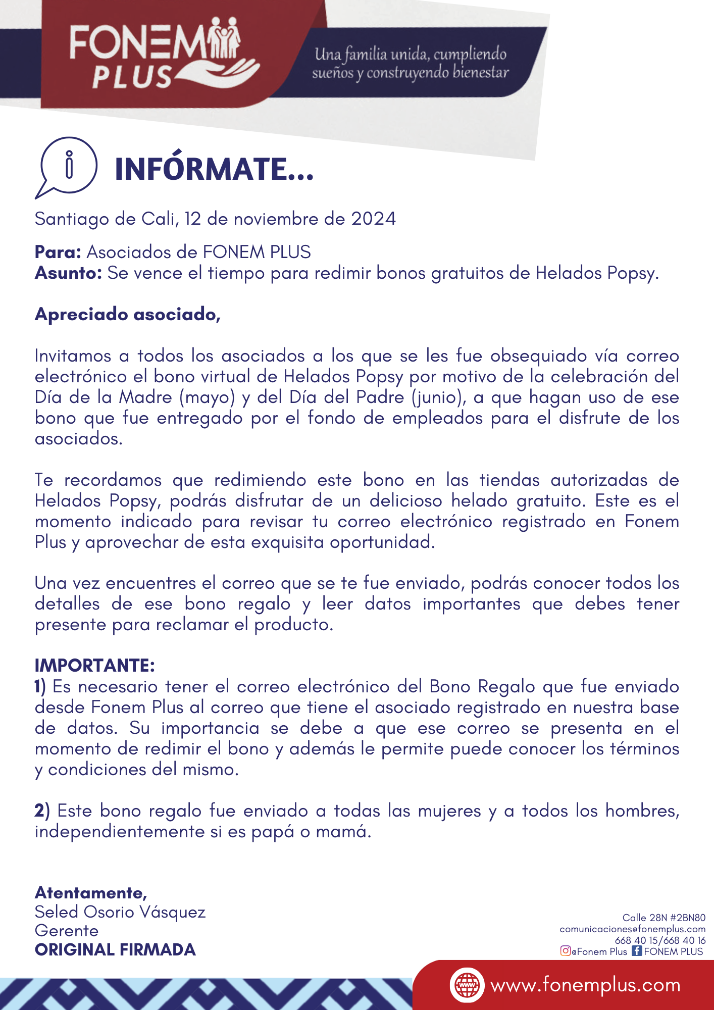 Un exquisito Helado de Popsy gratuito aún espera ser redimido por ti, Asociado. Te enviamos un bono regalo a tu correo. Noviembre 12, 2024 12Nov